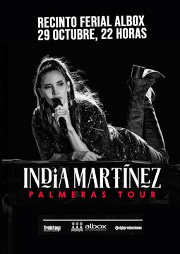 Albox recibe a una de las grandes artistas de la música en España. La cordobesa de nacimiento y almeriense de adopción, India Martínez presenta su Gira 'Palmeras Tour' en la Feria de todos los Santos, en el recinto ferial.