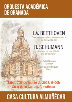 Orquesta Académica de Granada presenta un concierto especial con obras de L.V. Beethoven y R. Schumann. Rafael Lamas, director. José Luis de Miguel, piano