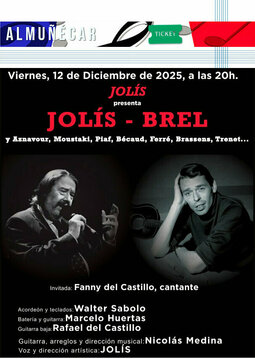 La canción francesa vuelve a sonar en la Casa de la Cultura de Almuñécar. Jolís - Brel realizan un homenaje a las grandes voces como las de Aznavour, Piaf, Moustaki, y otras muchas. Con la participación, como artista invitada, de Fanny del Castillo. Arropados por una banda de lujo, con Walter Saboro (acordeón y teclados), Marcelo Huertas (batería y guitarra), Rafael del Castillo (guitarra baja), Nicolás Medina (guitarra y dirección musical), y la voz de Jolís (director artístico).